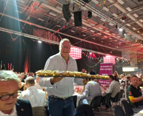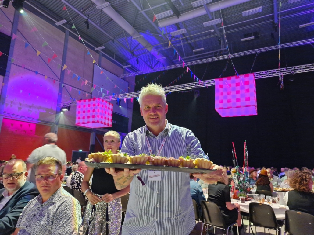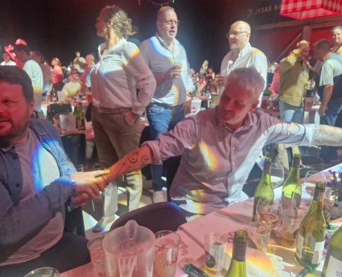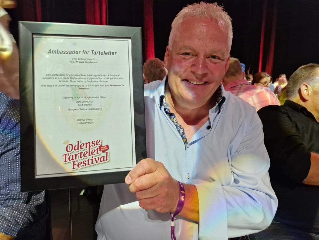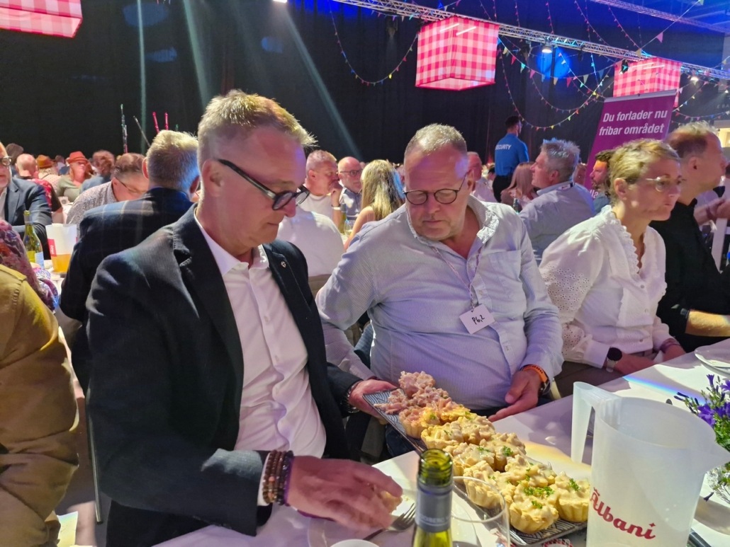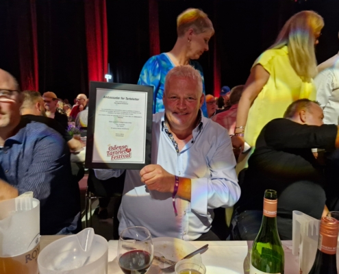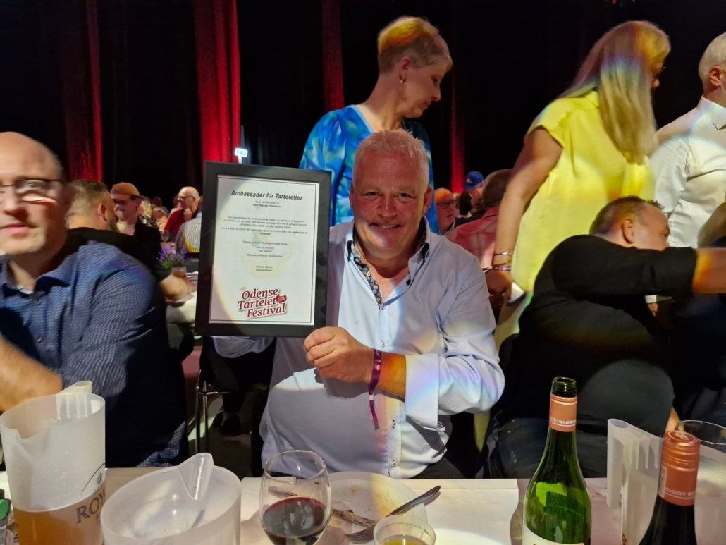 Fyens Torskelaug holdt fronten med højt humør ved vores borde, og Oldermanden kunne hædres som ambassadør for tarteletten af Odense Tartelet Festival – en titel, han naturligvis modtog med den værdighed, der kendetegner en sand Oldermand.