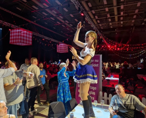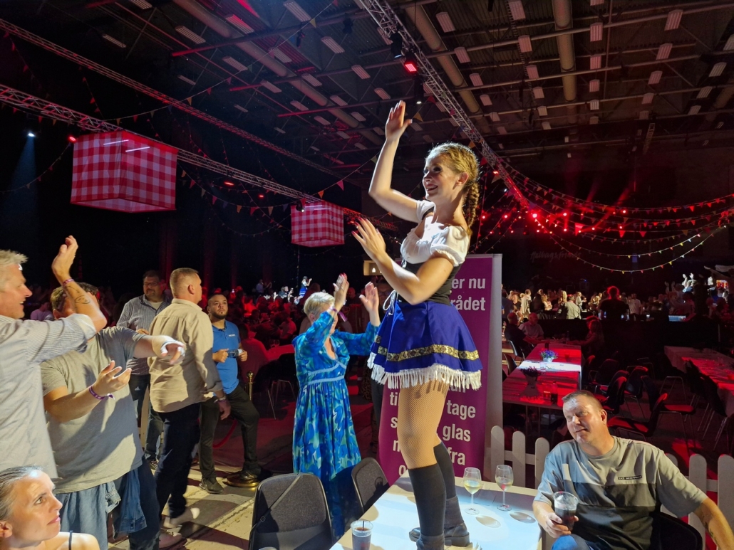 “i aften skal der festes, spises, drikkes og danses på bordene.”